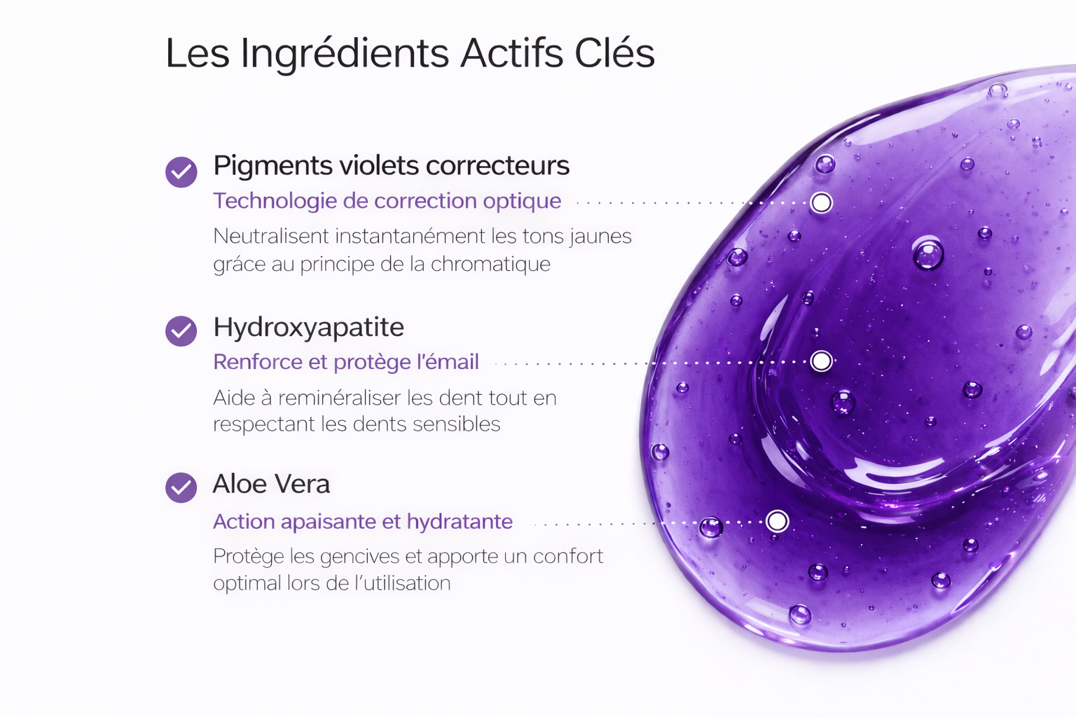 Sorbitol,Eau,Silice hydratée,Lauryl sarcosinate de sodium, Gomme de cellulose, Gomme de xanthane, Propylène glycol, Extrait de Chondrus crispus, Sorbet de potassium, Trichorogalatose, Carbonate de sodium, Phytate de sodium, Acide citrique, Arôme, CI74160 (colorant), CI12490 (Colorant)