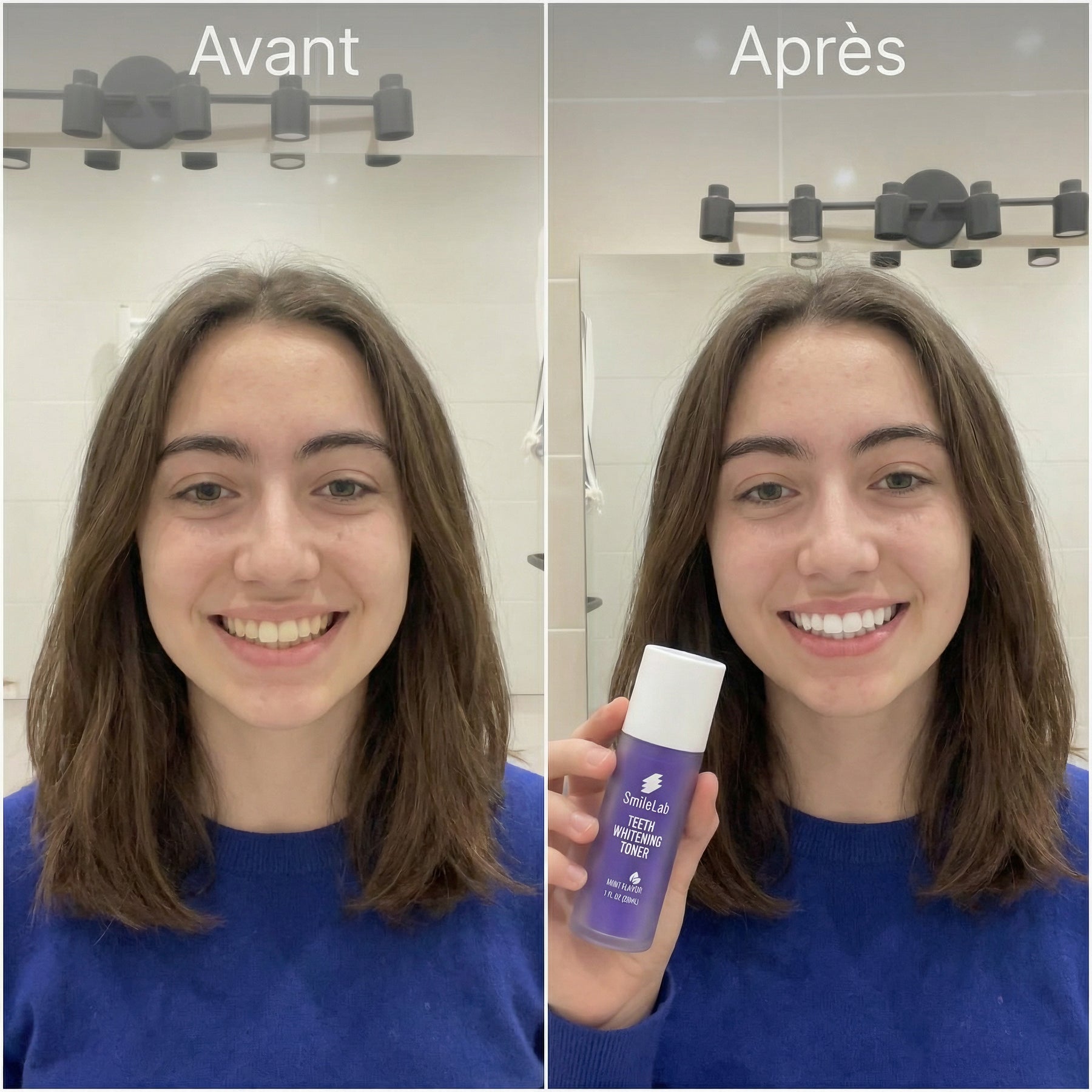 Le SmileLab Teeth Whitening Toner est conçu pour un usage quotidien afin de maintenir un sourire éclatant. Sa formule douce aide à réduire les taches progressivement et à rafraîchir l’haleine sans agresser les dents.